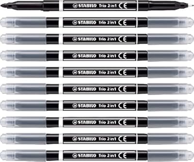 🇪🇸 Rotulador de doble punta STABILO Trio 2 en 1 - Caja con 10 unidades color negro
