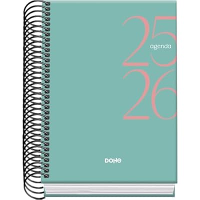 🇪🇸 Dohe - Agenda Escolar 2025 2026 - Día Página Tamaño A6 12x17 cm Español e Inglés Septiembre a Junio Cierre de Espiral Tapa Dura - SYSTEM Verde