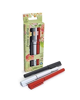 🇪🇸 Pigna Lote de 3 bolígrafos NATURE FLOWERS azul rojo negro