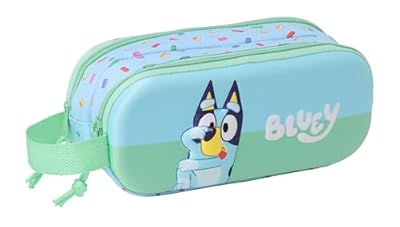 🇪🇸 SAFTA BLUEY 3D - Portatodo Doble 3D Estuche Infantil Estuche Niño Ideal para Niños en Edad Escolar Cómodo y Versátil Calidad y Resistencia 21x6x8 cm